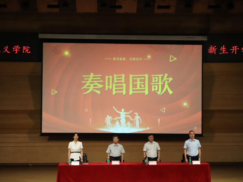 本网讯 9月10日上午,我院于陈熹音乐厅隆重举行了2025级新生开学典礼。典礼有学院党委书记侯玉基、院长曹和修、副院长谢石生、各系部主任、2025级新生班主任、辅导员、教务员、带班党员、朋辈辅导员以及2025级全体新生共约270人参加。典礼由学院党委副书记杜志欣主持。