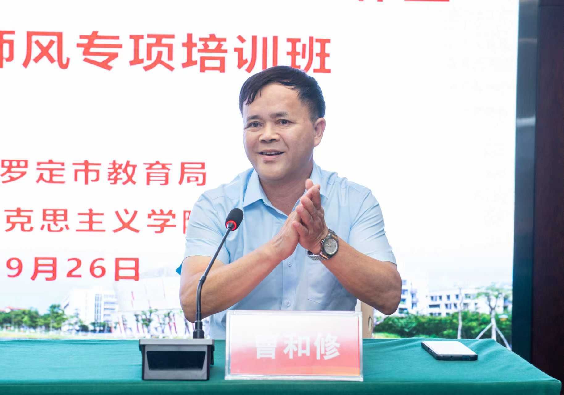 曹和修向出席开班仪式的各位领导及各位学员们表示了欢迎和问候。他指出学院正在省和学校党委的正确领导下积极推进“三所学校”和县中质量提升工作,本次培训班是该项工作的重要内容之一。培训班精心安排了丰富多样的课程,邀请了教育领域的专家学者和一线名师,希望能够通过培训,与罗定教育局一起打造一支师德高尚、业务精湛的教师队伍,推动“三所学校”和县中教育质量实现飞跃。