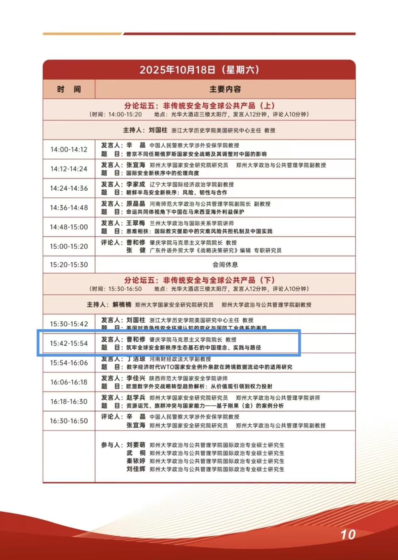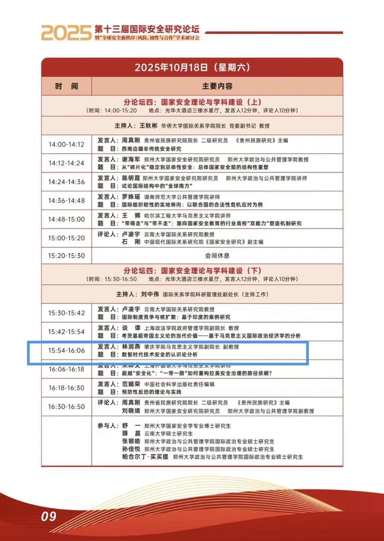 英国365集团院长曹和修教授、副院长林润燕受邀参加了此次论坛,并在分论坛作报告发言。曹和修院长在分论坛四:国家安全理论与学科建设(下)作题目《筑牢全球安全新秩序生态基石的中国理念、实践与路径》报告;林润燕副院长在分论坛五:非传统安全与全球公共产品(下)作题目《数智时代技术安全的认识论分析》报告。两位领导所做的报告均得到与会专家的高度认可。