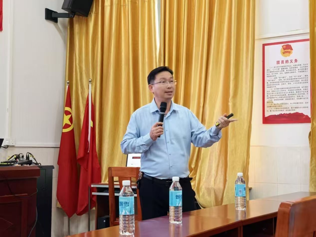 林炳源以“党建引领,铭恩育人”为主题,从“明确方向、学校概况、创建品牌、育人成效、未来展望”五个维度,向师生们详细解读了罗定中学城东学校以基层党组织建设为根脉,打造“善治感恩、厚德知恩、启智承恩、健体续恩、尚美颂恩、重劳报恩”六大育人体系,将思政教育融入学生成长全过程的创新做法和具体成效。