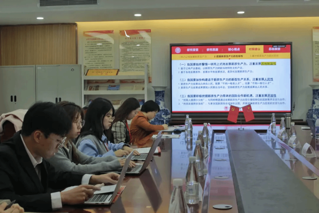 此次大会共设置10个分论坛,林嘉庆在大会第6分论坛“两个结合与中国式现代化理论体系的建构”中,汇报项目入选论文——《大国竞争视阈下新质生产力的分合二重性》。他围绕研究背景、研究思路、核心观点、对策建议和总结展望五个方面进行介绍,系统阐述与分析了大国竞争场域下新质生产力所显现的对抗性与包容性的分合二重属性,并提出系列对策建议,汇报内容受到与会专家学者的热议和认可。