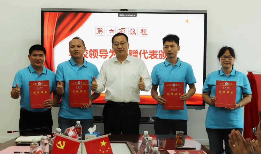 学校领导为黄永超等四位校友捐赠代表颁发证书